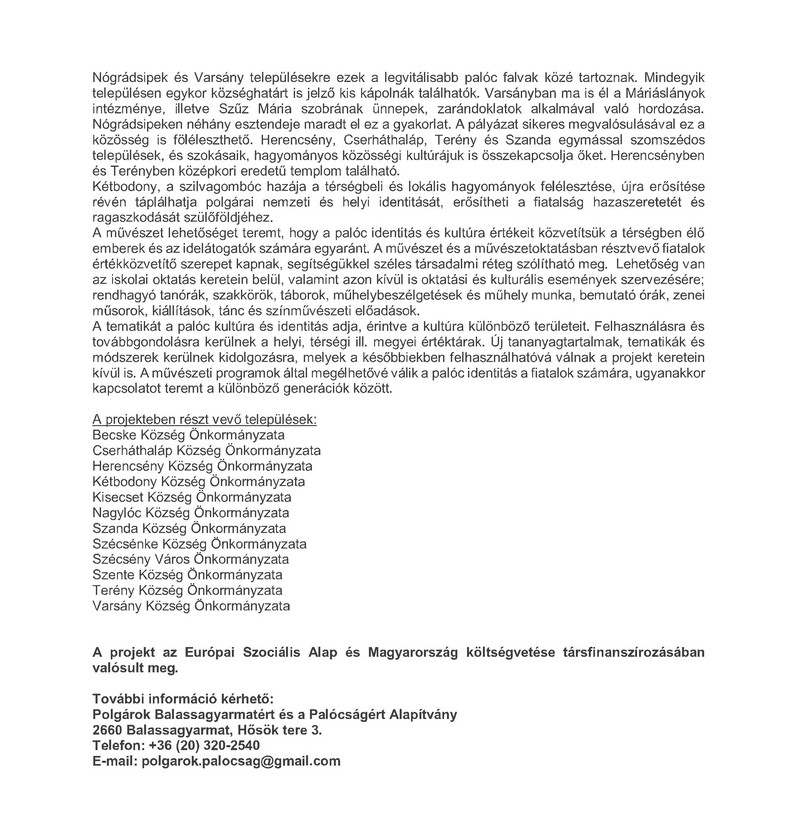 Palóc identitás erősítése - 2018